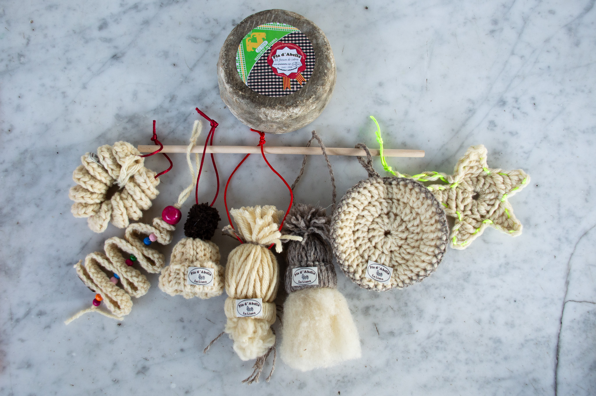 1 conjunt de 7 decoracions per l’arbre fetes amb la llana reciclada de les nostres ovelles